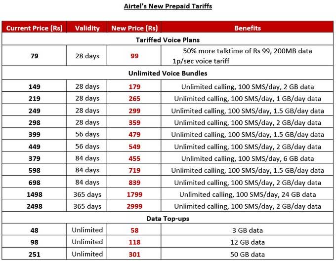 या प्रीपेड प्लॅनची नवीन किंमत २६ नोव्हेंबरपासून सुरू होईल. सध्यातरी रिलायन्स जिओ आणि वोडाफोनने दरवाढीची घोषणा केलेली नाही. तथापि, असे मानले जाते की या कंपन्यादेखील लवकरच त्यांच्या प्रीपेड प्लॅनच्या किंमती वाढवू शकतात.