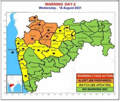 हवामान खात्याने दिलेल्या माहितीनुसार, नाशिक, नंदुरबार, धुळे, जळगाव व औरंगाबाद या जिल्ह्यांना ऑरेंज अलर्टदेखील जारी करण्यात आला आहे. तर सोलापूर, कोल्हापूर, सांगली, सातारा, लातूर, बीड, परभणी, नांदेड, हिंगोली, वाशिम, यवतमाळ, चंद्रपूर, गडचिरोली, भंडारा आणि गोंदिया या जिल्ह्यांमध्ये वेगवान वाऱ्यासह पाऊस पडण्याची शक्यता आहे.