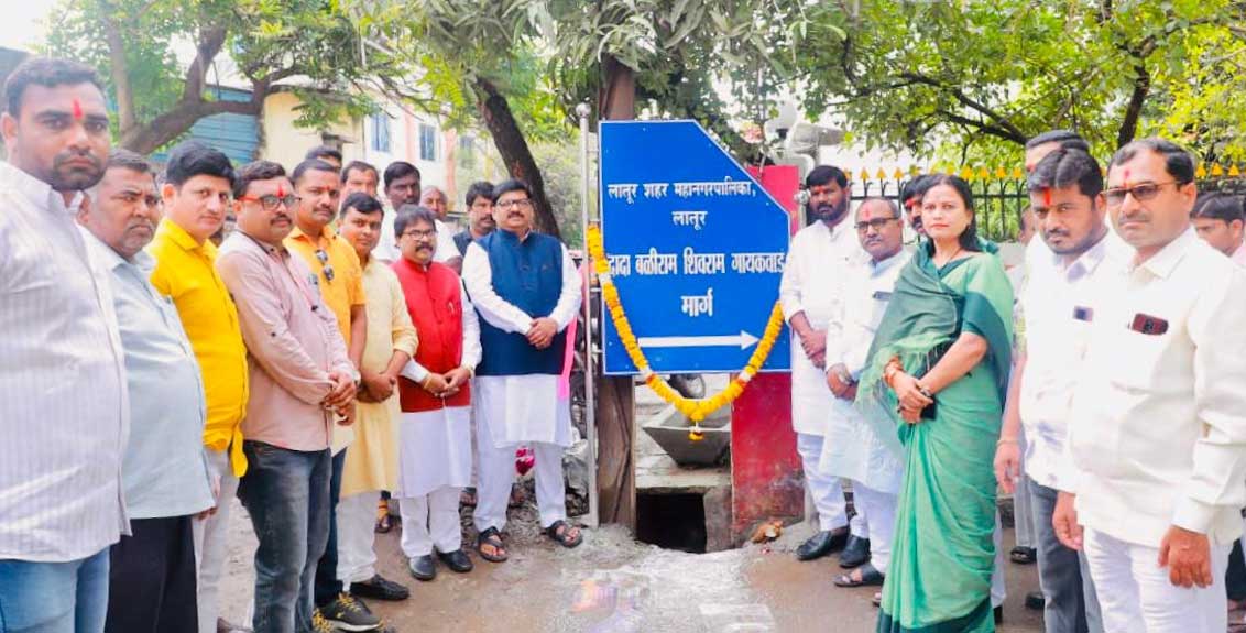 लातूर : लातूर महानगपालिकेने परमपूज्यनिय दादा बळीराम शिवराम गायकवाड यांच्या नावाने त्यांच्या निवासस्थानाकडे जाणाऱ्या सरस्वती विद्यालयाच्या समोरील रस्त्याचे आज त्यांच्या ९१ व्या जयंती च्या निमित्त “दादा बळीराम शिवराम गायकवाड मार्ग” असे नामकरण करून त्यांचा गौरव केला आहे. नामकरण फलकाचे उद्घाटन लातूर महानरपालिकेचे उपमहापौर चंद्रकांत बिराजदार यांच्या हस्ते मोठ्या उत्साहात संपन्न झाले.